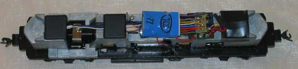 Trim the wires for the headlights to length, giving yourself some extra, just in case! And after putting on some heat shrink tubing, solder them to the cut down ends of the dropping resistors. Plug in your decoder and harness and head for the programming track. The finished installation should look like mine. I hope that you enjoy your locomotive for a long time!