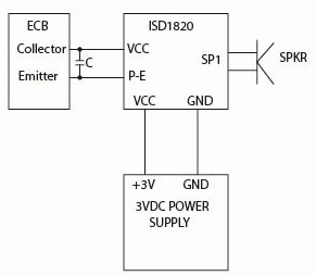 DCC Specialties product terminal identification The inputs of the ISD 1820 are extremely sensitive. So the first time I tried hooking it up to my PSXX, it falsed a lot. There is nothing worse than an alarm that goes off when it is not supposed to. The solution was simple. I just added a 0.0047 uF (micro-farad) capacitor - labeled C in my schematics - across the output of the PSXX. That cured it. A 0.01uF would probably work, too, but I didn't have any of those and I had plenty of the 0.0047uF capacitors. As long as you buy one that it is rated for at least 10 volts, you are fine. 50V and 100V capacitors are very common and are just a little bigger, but plenty small enough. Side note: I have 13 of these installed. For a reason I have yet to determine, one of them falses at power up. While I hope to figure out why this one, a single false at power up is something I can live with if necessary.